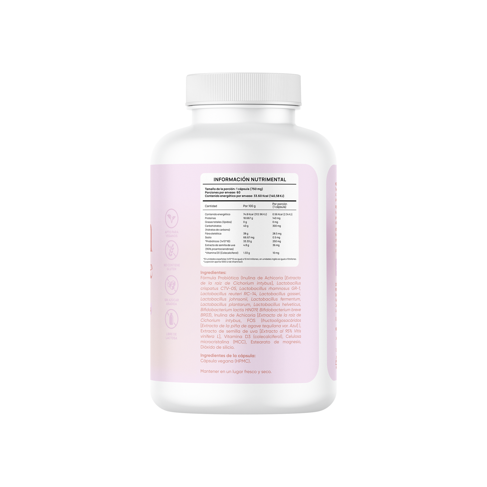 Su mezcla incluye probióticos seleccionados como Lactobacillus crispatus, L. rhamnosus GR-1, L. reuteri RC-14, L. gasseri, L. fermentum, L. plantarum, entre otros, elegidos por su uso tradicional y diversidad.